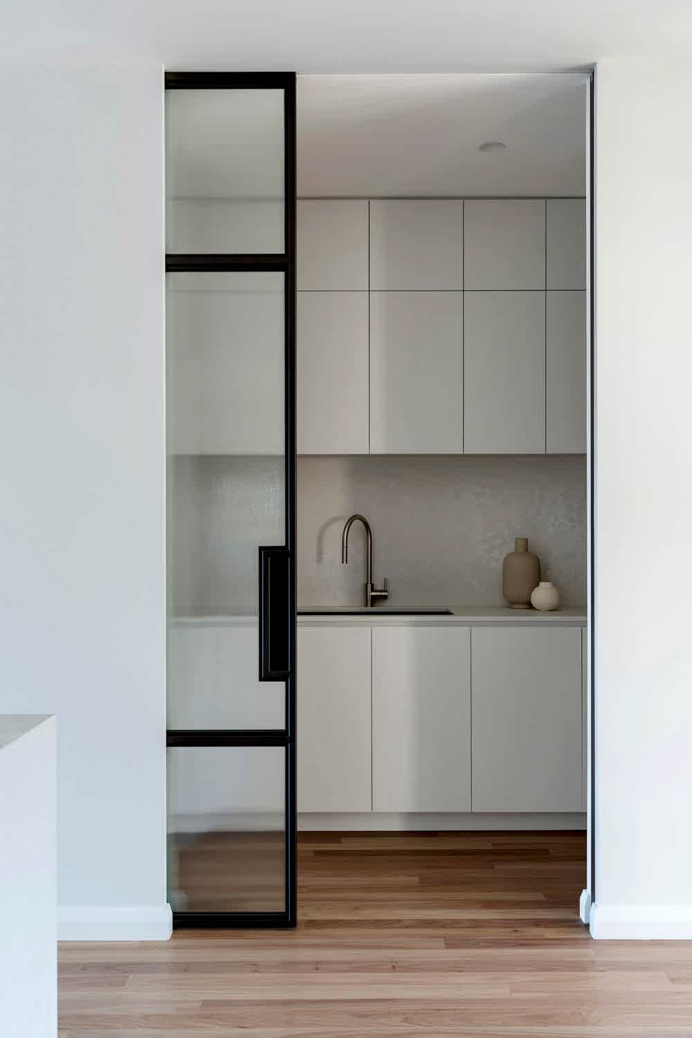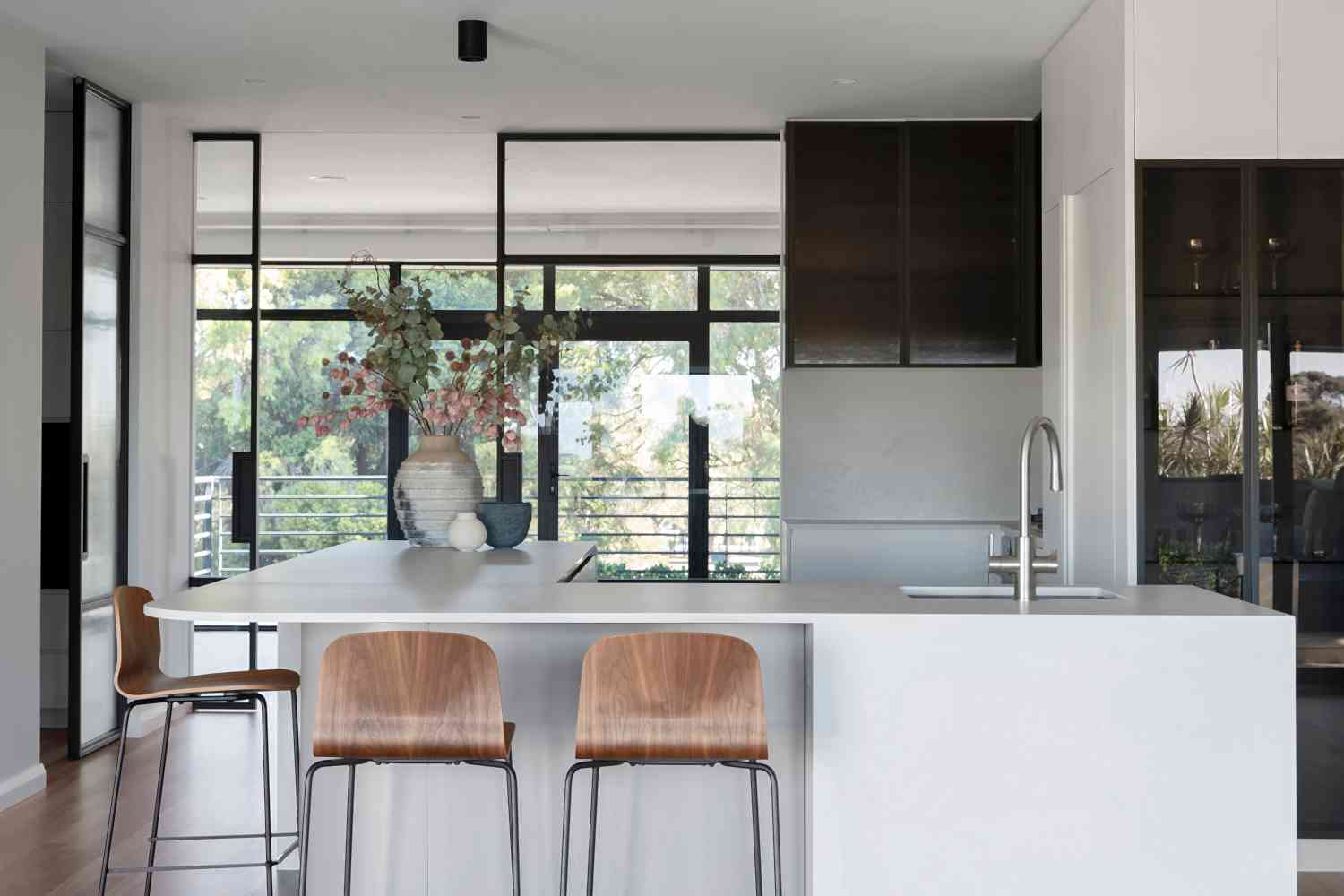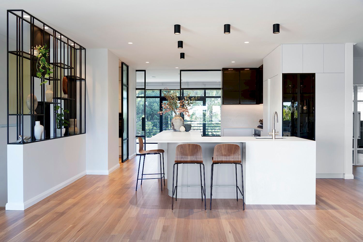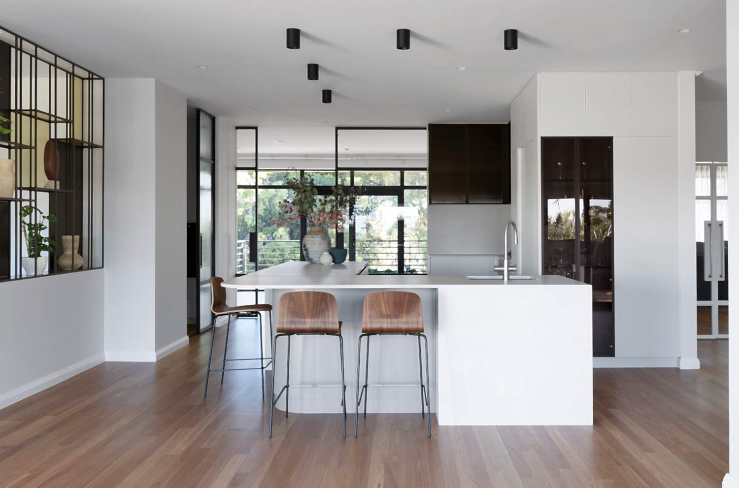Our brief was to reorient the kitchen while maintaining functionality. The redesign involved significant modifications to the kitchen footprint, but we succeeded by incorporating clever interior design solutions. The reconfigured layout optimizes both functionality and aesthetics, creating a well-balanced space that beautifully frames the park view and enhances the kitchen’s practicality. Key features include a large island bench, a hidden butler’s pantry, and contemporary design elements. This transformation was achieved through innovative design, meticulous planning, and skilled execution, resulting in a kitchen that perfectly meets our client’s needs and preferences.