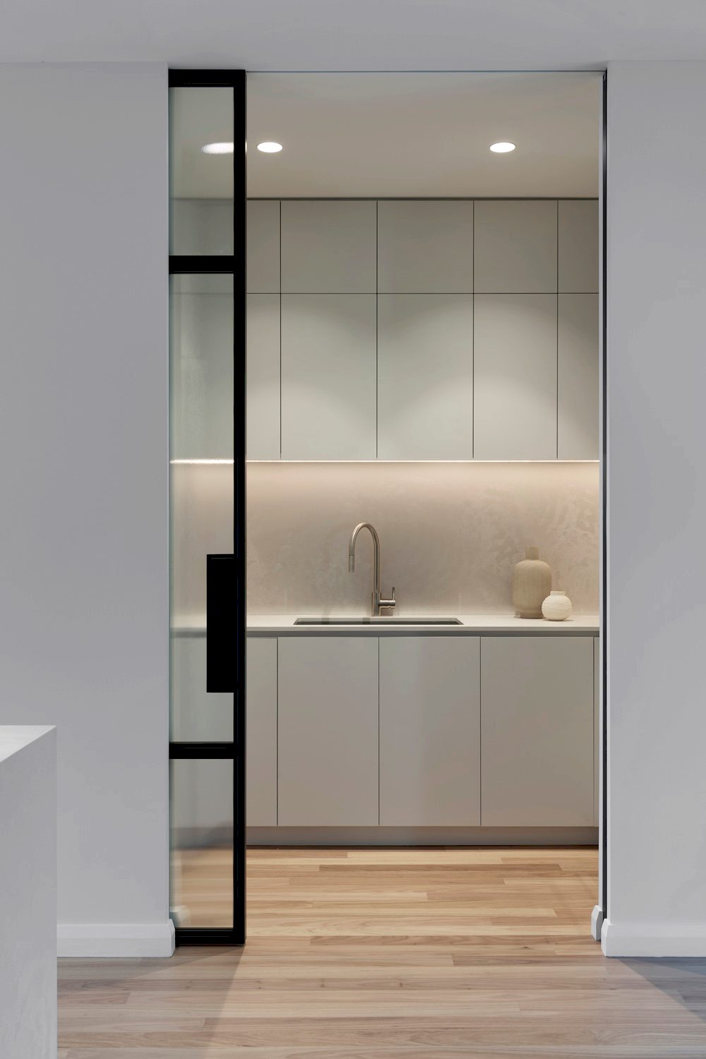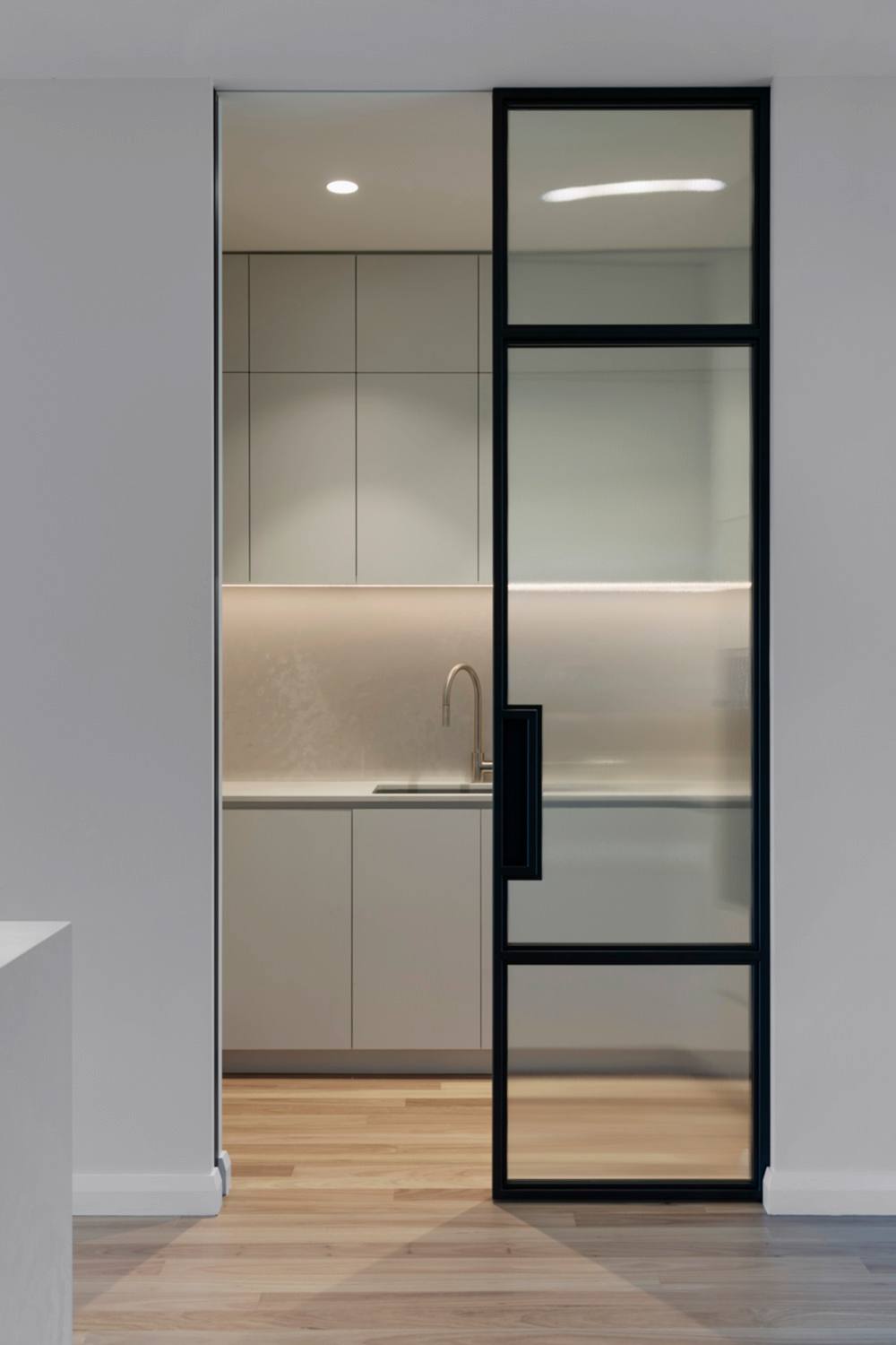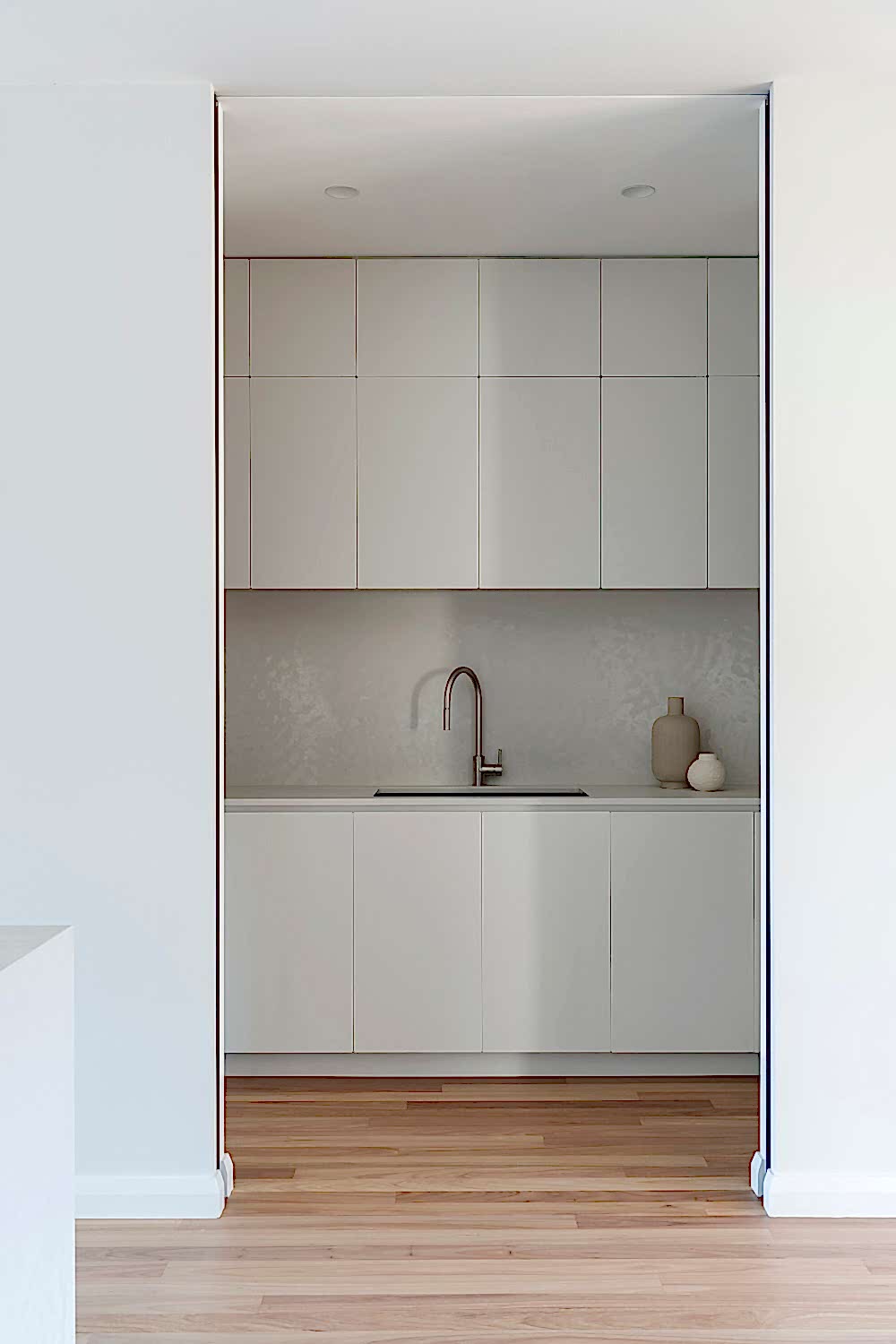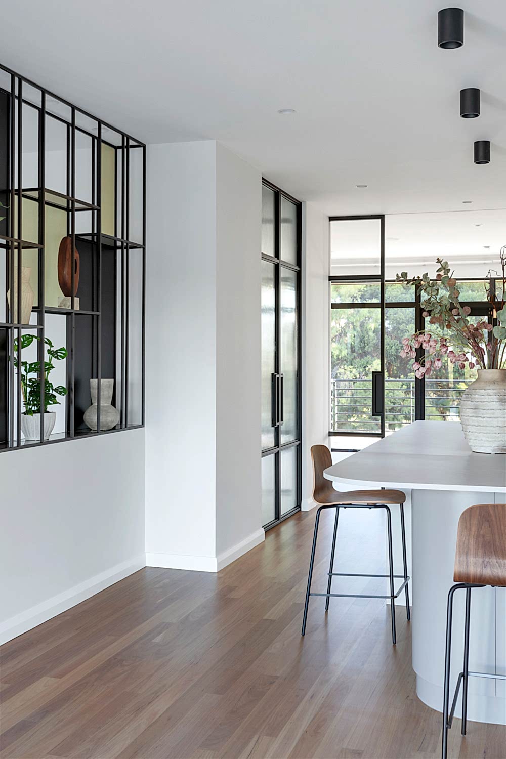 Our brief was to reorient the kitchen while maintaining functionality. The redesign involved significant modifications to the kitchen footprint, but we succeeded by incorporating clever interior design solutions. The reconfigured layout optimizes both functionality and aesthetics, creating a well-balanced space that beautifully frames the park view and enhances the kitchen’s practicality. Key features include a large island bench, a hidden butler’s pantry, and contemporary design elements. This transformation was achieved through innovative design, meticulous planning, and skilled execution, resulting in a kitchen that perfectly meets our client’s needs and preferences.